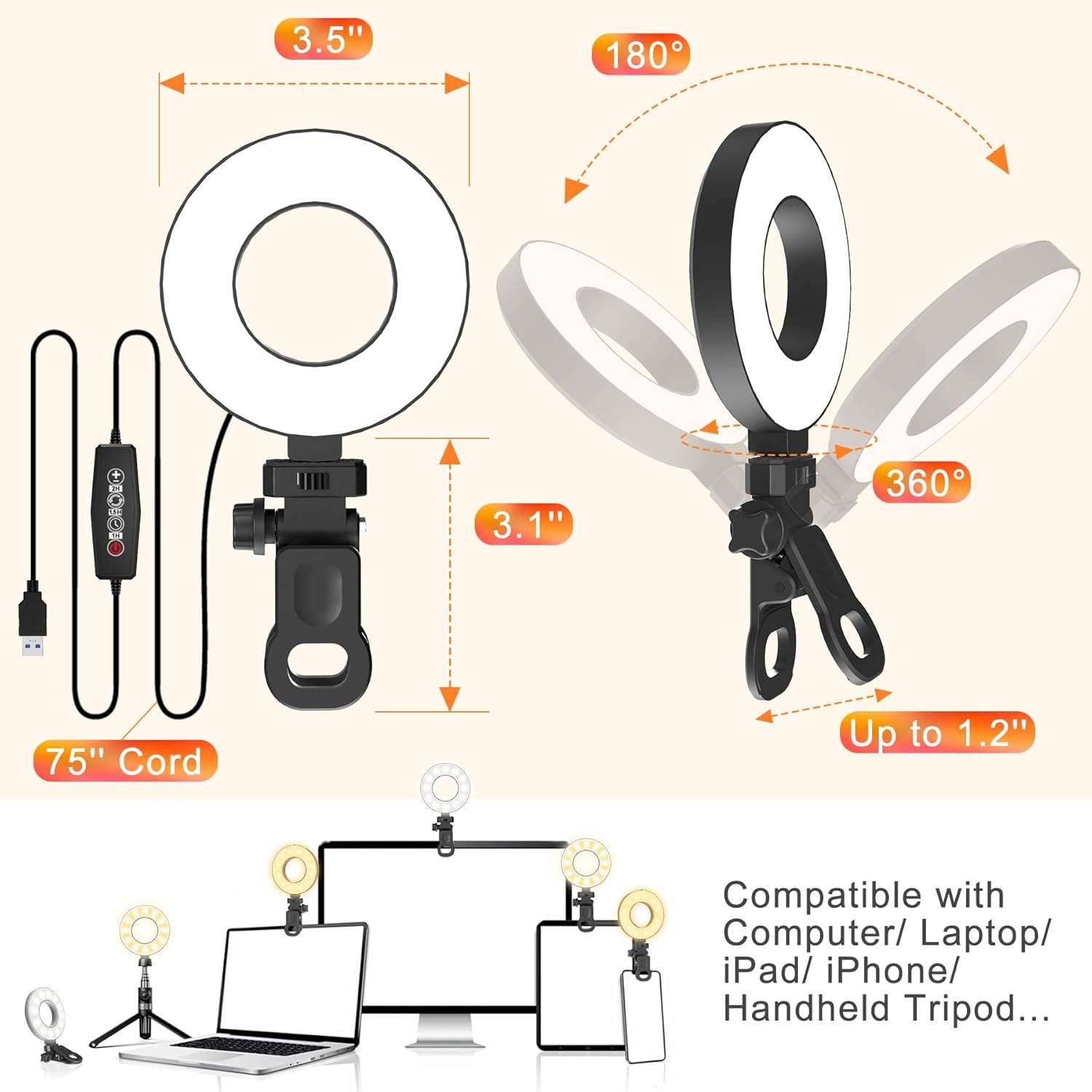 Anillo de luz con clip para móvil. Mejora tus selfies y videollamadas con iluminación uniforme.