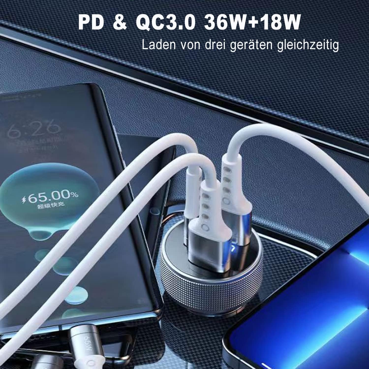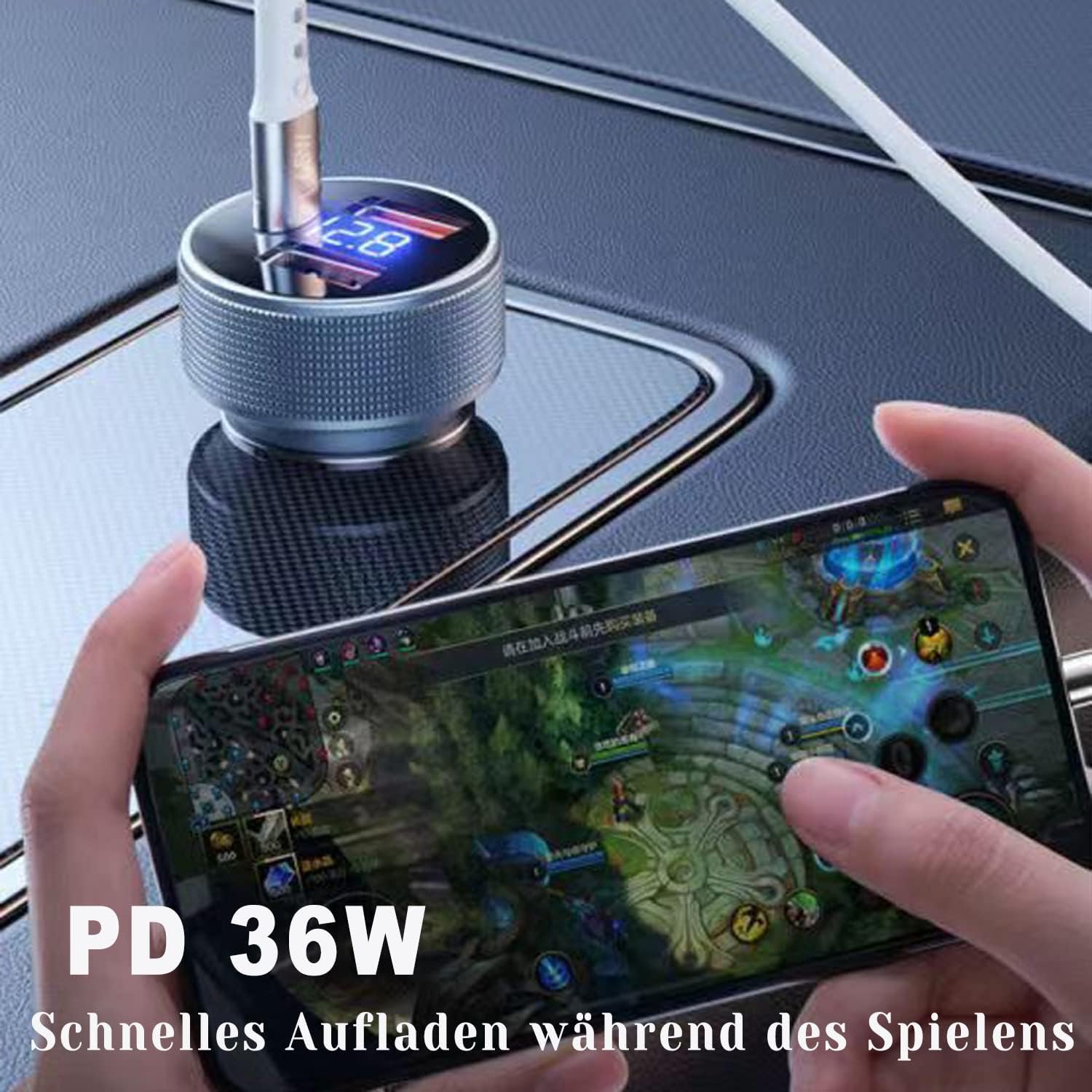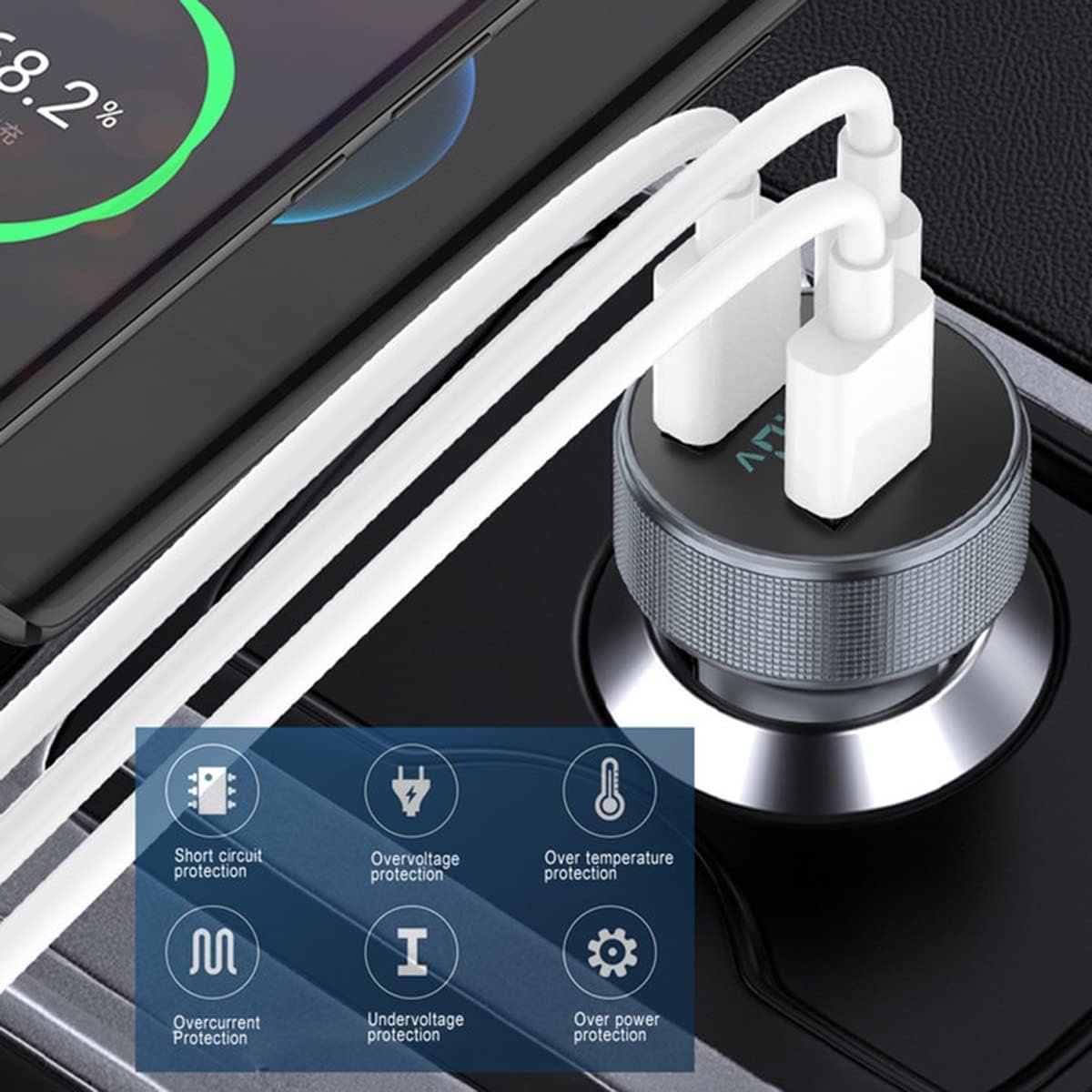 Cargador de mechero con 3 puertos de carga rápida y pantalla LED de voltaje.
