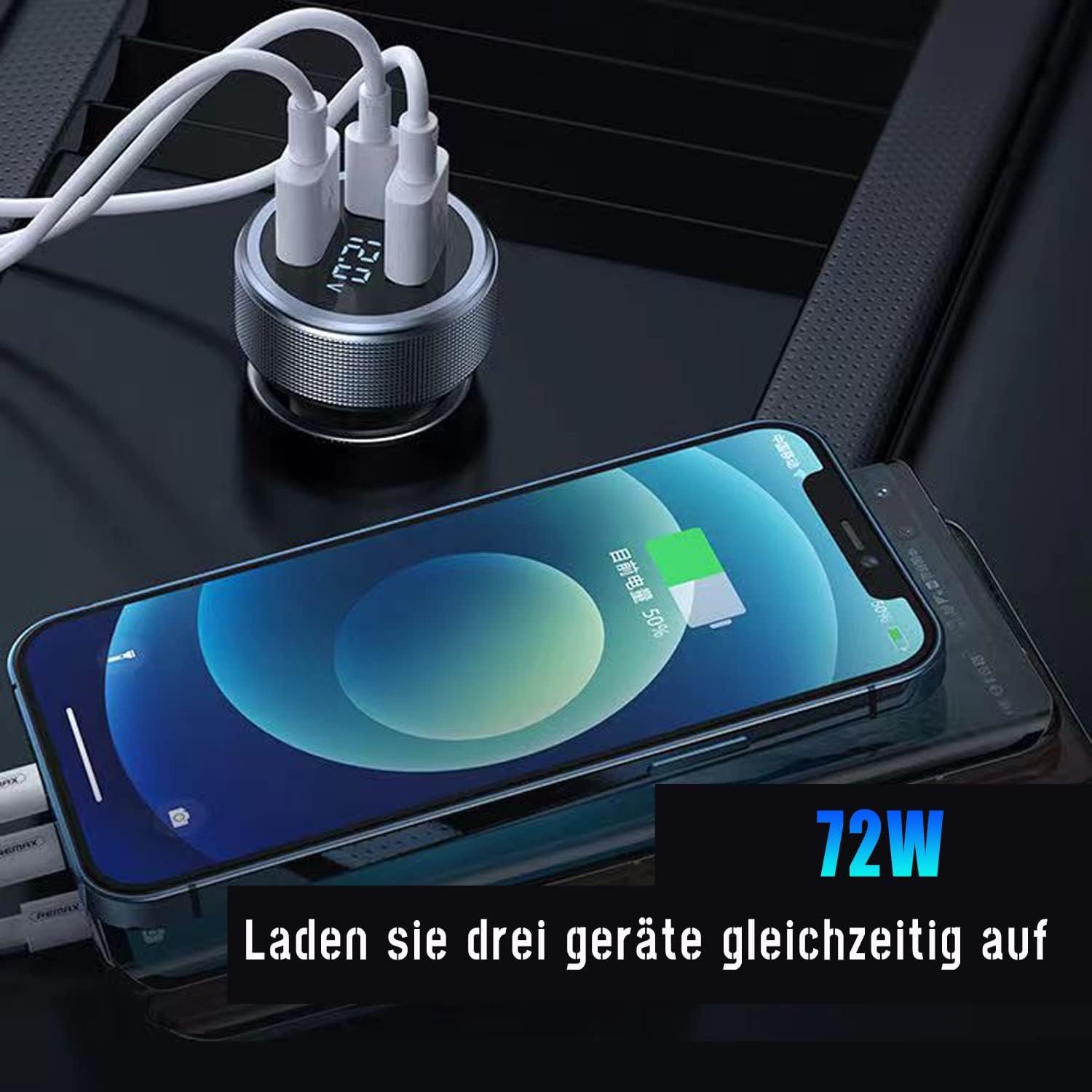 Cargador de coche 72W con 3 puertos y voltímetro LED