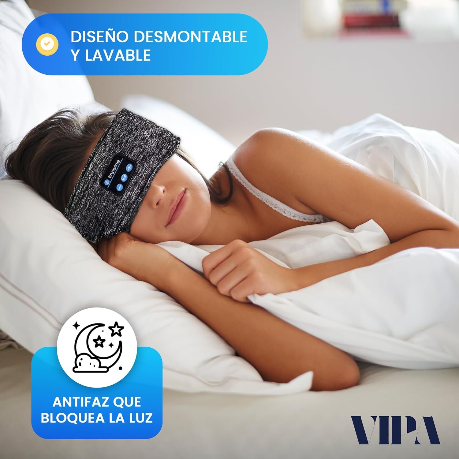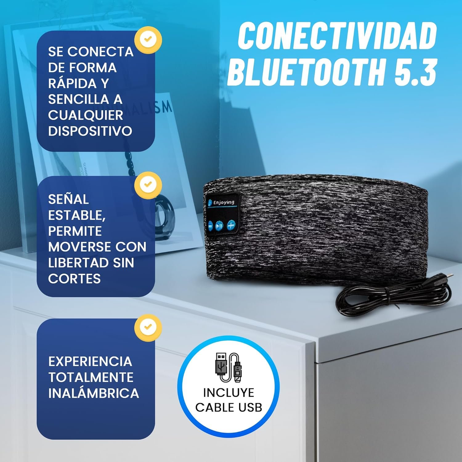 Diadema cómoda con altavoces Bluetooth integrados. Escucha música o podcasts y duerme sin molestias.