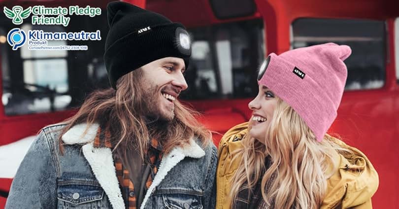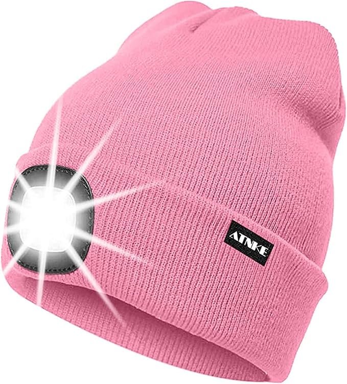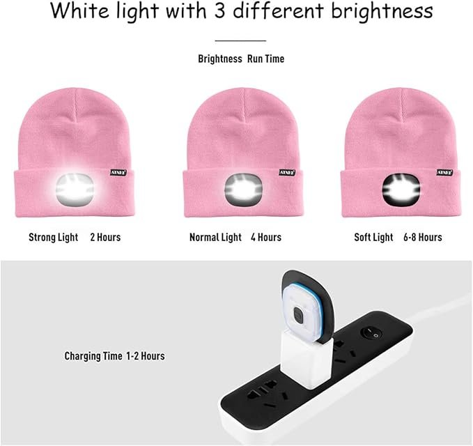 Gorro cálido con linterna LED recargable. Perfecto para paseos nocturnos, camping o bici.