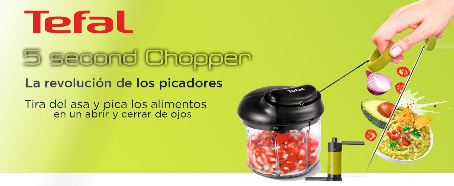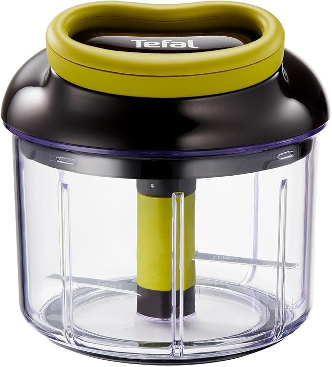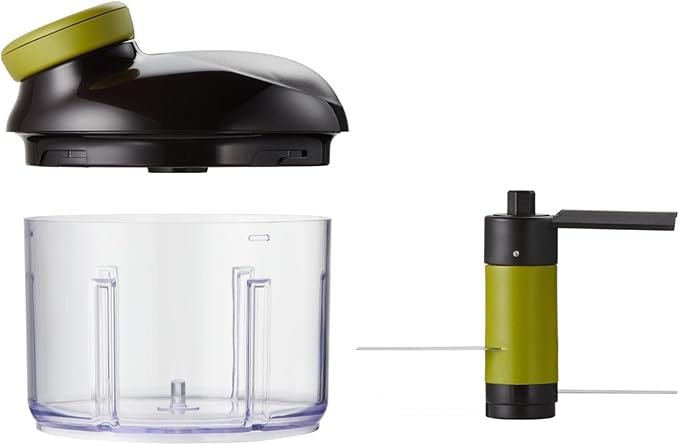 Picadora manual con sistema de cuchillas ultraafiladas para cortar verduras, frutos secos y hierbas en segundos. Compacta y sin necesidad de electricidad.